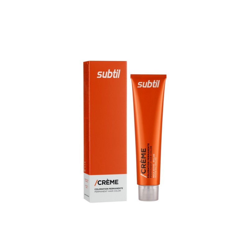 Coloration d'oxydation permanente, la gamme SUBTIL /CRÈME offre un catalogue de 97 nuances pour répondre à toutes les envies créatives tout en garantissant une couverture des cheveux blancs optimale.… SUBTIL /CRÈME offre une brillance exceptionnelle tout en préservant l'intégrité de la fibre et du cuir chevelu. La couverture est durable et homogène jusqu'à 100% des cheveux blancs. Verser une part de SUBTIL /CRÈME. Ajouter une part et demie de crème oxydante SUBTIL /OXYDANT 1 ou 2. Appliquer le mélange sur cheveux secs non lavés. Laisser pauser de 30 à 35 minutes. Emulsionner soigneusement avec de l'eau tiède et rincer. Procéder au shampooing spécfique après coloration SUBTIL pH, puis rincer. Coloration d'oxydation à l'Épaline et aux vitamines E et PP