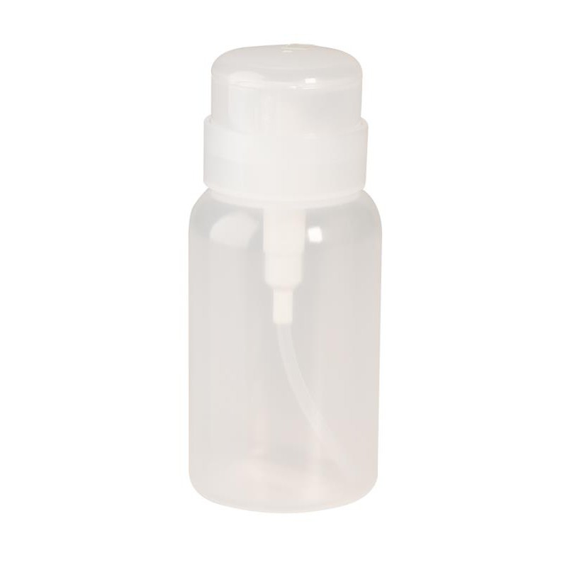 Flacon rechargeable, à cran d’arrêt anti-évaporation et couvercle de sécurité pour la distribution de dissolvant.