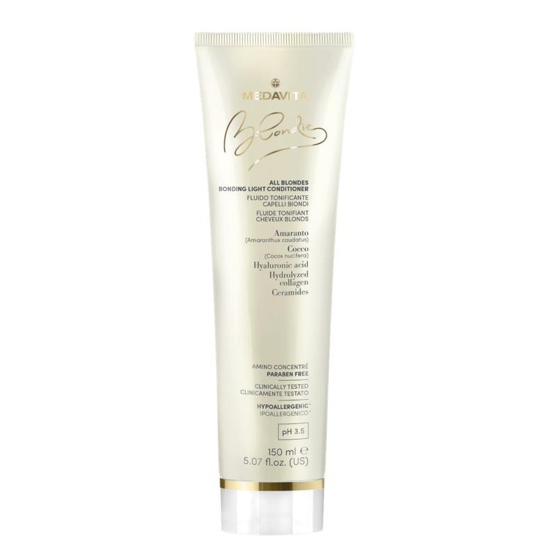 ALL BLONDES BONDING LIGHT CONDITIONERApres-shampooing corporisant. Rend instantanement les cheveux faciles a coiffer en leur apportant volume et legerete. Contient du Collagene hydrolyse, reconstituant et conditionnant, de l’Acide hyaluronique, hydratant et elastifiant, et des proteines d’Amarante, hydratantes, protectrices et filmogenes ; un precieux complexe de Ceramides, dont l’action...