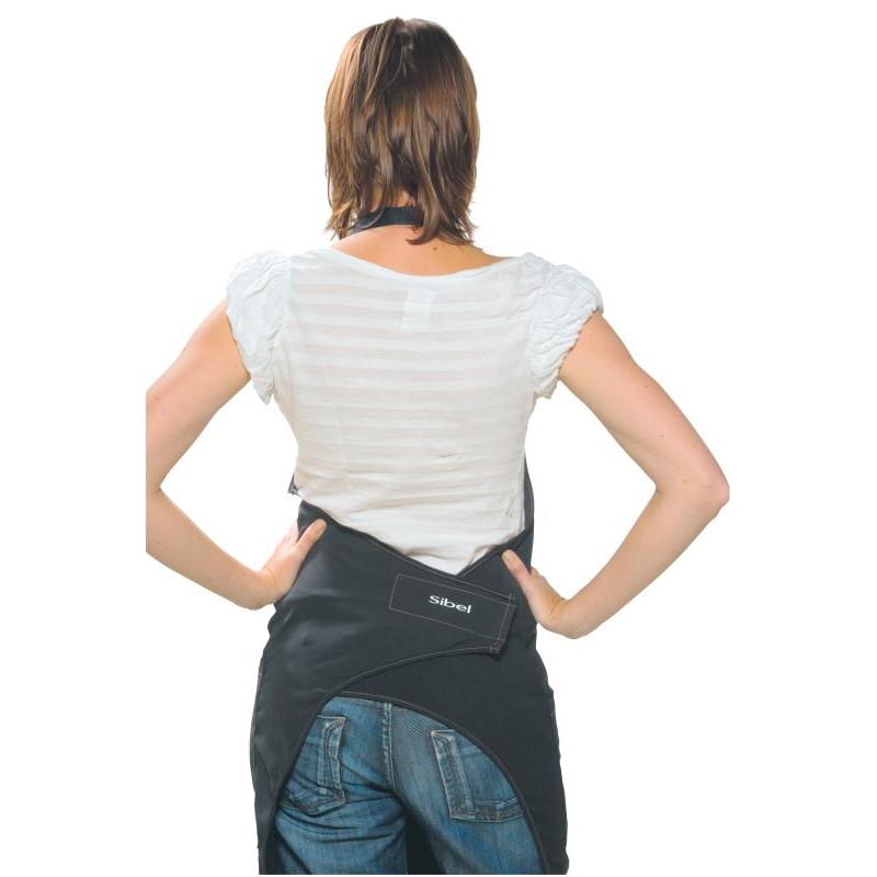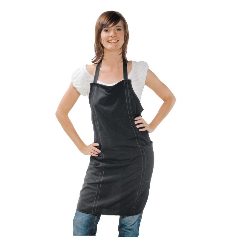 Tablier hydrofuge, à utilisation ultra-rapide grâce à sa large fermeture par velcro. Le tissu résiste à l'eau de javel et ne nécessite pas de repassage.