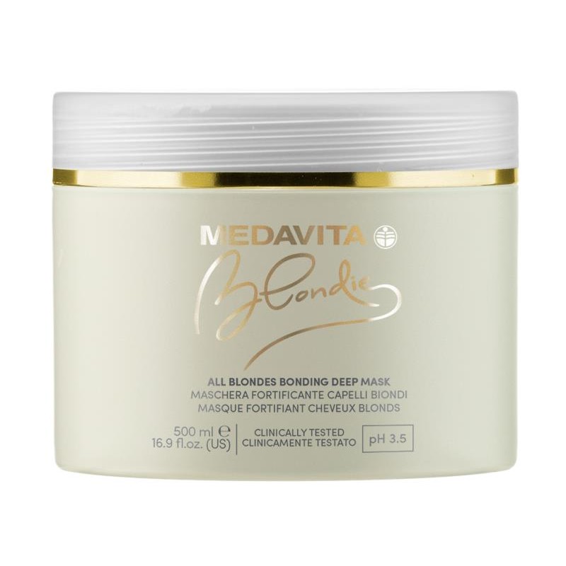 ALL BLONDES BONDING DEEP MASKMasque repulpant pour tous les cheveux blonds colores/eclaircis. Preserve et rehausse les reflets, en redonnant du corps a la structure. Contient du Collagene hydrolyse, reconstituant et conditionnant, de l’Acide hyaluronique, hydratant et elastifiant, et des proteines d’Amarante, hydratantes, protectrices et filmogenes ; un precieux complexe de Ceramides, do...
