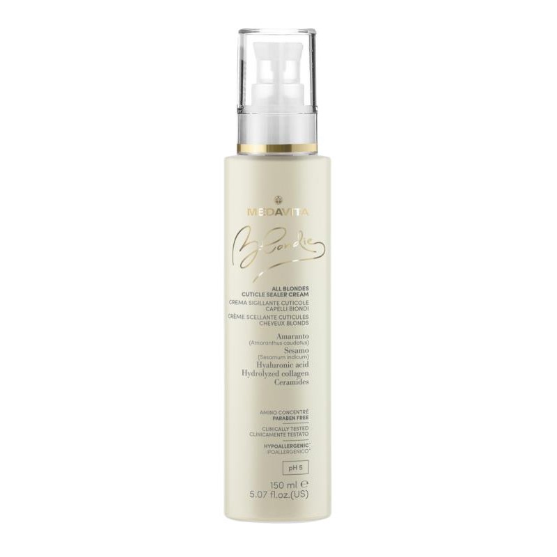 ALL BLONDESCUTICLE SEALER CREAMCreme hydratante et scellante pour les cuticules. Rend les cheveux faciles a coiffer pendant le styling et assure un leger effet modelant sur cheveux secs. Contient du Collagene hydrolyse, reconstituant et conditionnant, de l’Acide hyaluronique, hydratant et elastifiant, et des proteines d’Amarante, hydratantes, protectrices et filmogenes ; un precieux comp...