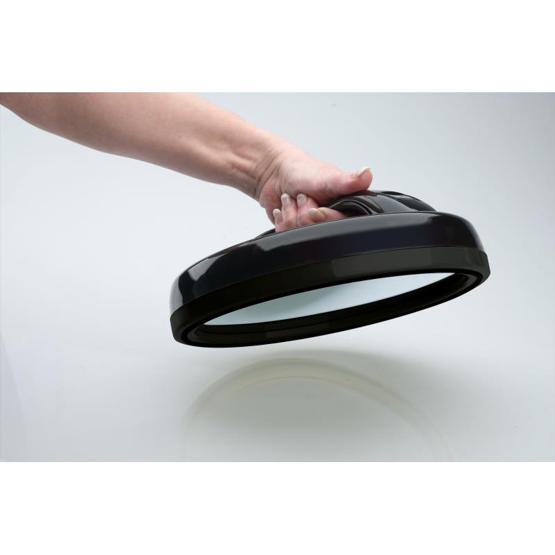 Miroir rond avec poignée.Ce miroir rond est équipé d’un anneau antidérapant en caoutchouc qui amortit le bruit lorsqu'on le repose.